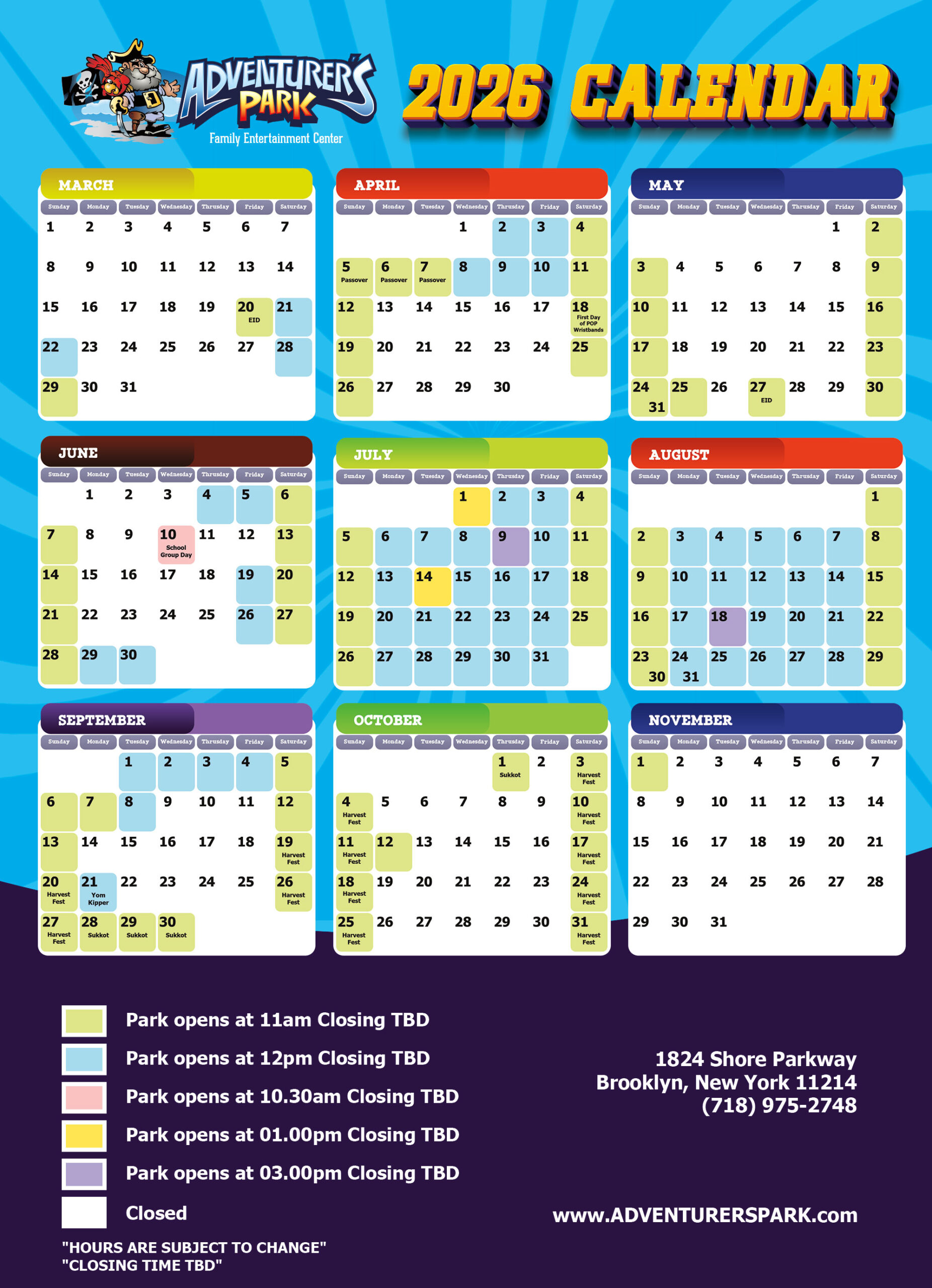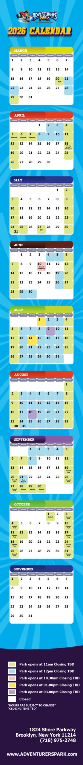 *Park Hours are subject to change without notice.